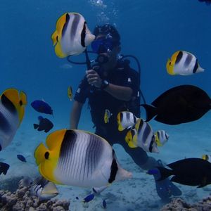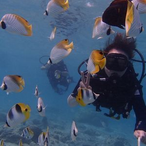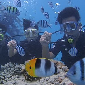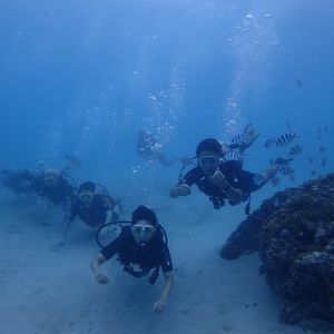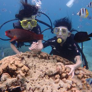 ダイビング前に丁寧に耳抜きや海中でのことを丁寧に説明をしていただいたので、安心してすることができました。また、水中でもダイバーさんがオッケー?と適宜聞いてくださり、優しかったのでとてもおすすめです。魚がたくさんいて、思わず笑顔になりました!餌えり、とても楽しかったです。