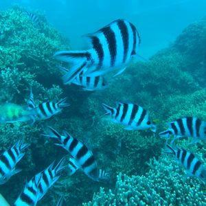 鼻中隔湾曲症のためか、耳抜きが片方なかなかうまくいきませんでしたが、海の中を自由に泳ぐ事ができて楽しかったです。お魚がカラフルで綺麗だったのと、お肉をあげる事は未経験だったので楽しめました!