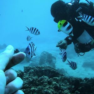 初めての体験ダイビングで不安でしたが、インストラクターの大志さんが優しく、丁寧に教えてくれたおかげで、可愛いお魚さん達に会える事が出来ました。