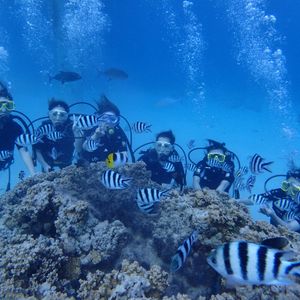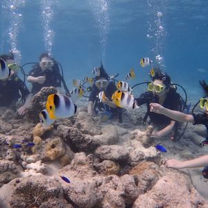 日本人ガイドさんという事で申し込みをしました。 わかりやすくそして、私達の自力で泳げるように指導してくださり最高の体験ができました。 潜るとそこはお魚天国でした。 今まで潜った事のない深さまで潜れるし、ここにして正解でした。またリピートさせて頂きたいです。 料金も満足だし水中写真もデータにして渡してくれて思い出になりました。