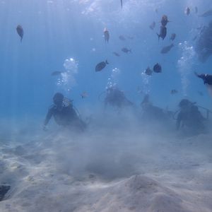 今回体験ダイビングで初めてスキューバダイビングに友達と挑戦しました!スノーケリング初めてそれが楽しくてやろうと思ったのがきっかけでしたが、友達も私もさいしょすっごく怖くて深く潜ってなんかあったらどうしようと色々考えていました。インストラクターとしてYu**さんがついてくれて日本人の方で日本語で説明してくださりとっても心強かったです。実際に潜る前に基本的なコツなどを教えてくれて、何も知らない私たち2人にとって、とても助かりました。実際潜ってみたときは教えてもらった動作のやり方を実践して練習してから潜ったので全く問題ありませんでした。潜る前に腰抜かしてた時はインストラクターさんが励ましてくれて勇気が持てました。6メートルくらい潜りましたが今まで写真で見たことしかないような景色が自分の目で見ることができてとても心が安らぎましたっ!!!感動的でしたっ!!今までやらなかった自分がもったいないっ!!!また海の中で写真を撮っていただいたり自分たちで持ってきたカメラで写真をとってとっても楽しむことができました!30分前後潜りましたが私にとっては10分くらいととても短く感じました。また始めは口呼吸がとても苦手で鼻で呼吸してしまうことがよくありましたがだんだんやっていくうちに慣れてきて出来るようになっていきました。最初とても怖がってたのが嘘なくらい2回目は落ち着いて海に潜ることが出来ました!!とってもいい経験ができていろんな世界が見れてとても満足です。次はインストラクターさんがとっても良かったので同じところでライセンスを取ろうと友達と話しています!今するかしないかで悩んでいらっしゃる方!ぜひ体験してみてください!とても安心できたしやって後悔はありません!!