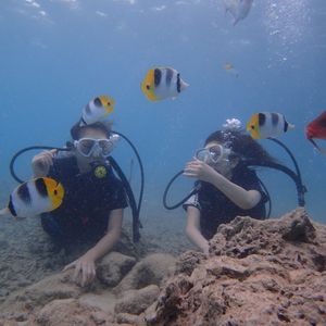 2人とも初めてだったけど日本人インストラクターが丁寧に教えてくれたので楽しく潜れました!!海もキレイ!魚も可愛い!最高の体験でした!