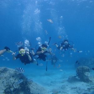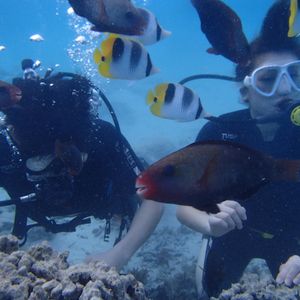 海中もそうですが、船の上でもスタッフのみなさんが盛り上げてくれて、とても楽しい時間を過ごすことが出来ました!またインストラクターの方だけではなく、専属のカメラマンも一緒に乗船&潜ってくれるので、たくさん写真を撮っていただき、いい記念になりました。日本人スタッフの方はもちろん、外国人スタッフの方も日本語で対応してくれるし、なによりすごく親切な方ばかりでした!