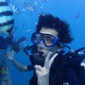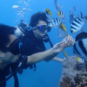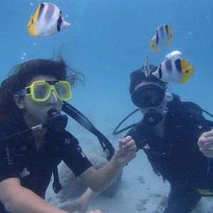 ですが、今回、初めて一人で体験したところ、インストラクターの方が詳しく説明してくださり、苦手な耳抜も痛くなる前に抜けるようになり、徐々に深くなり、海底の建物まで行き、見学している人を外から手を振ったり、たくさんの魚の中でたくさんの写真や動画を撮ってくださり、最後、CDにしてプレゼントしてくれるので最高の思い出と体験をすることができました。