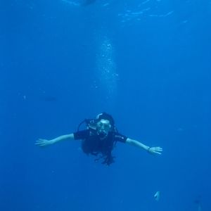 私は今回が初めてのダイビングでした。連れがライセンス保持者だったのと、インストラクターのクリスさんのユーモア交えた丁寧な指導で安心して楽しく潜ることができました。