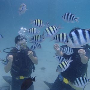 体験ダイビング2本。潜水時間も多くて、なにより担当してくれた方が、厳しくも暖かくて楽しい時間が楽しめました。写真も撮ってもらったり、魚もたくさんいて良かったですか。雨が降っても海の中は変わらないので、雨季でも楽しめます!苦しくて、挫折しそうになりましたけど、またチャレンジしたいです。