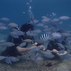 午前の体験ダイビングは、経験もないので若干不安でしたが、事前に説明をいただき、本番のときは2~3人のダイバーが付き添ってくれたので、安心して潜ることができました。ダイビングの前にシュノーケルをし、その時点で魚をたくさん見ることができて家族で喜んでおりましたが、ダイビングでさらに深いところまで潜ってみると、もっとたくさんの魚がいて、さらに自分でえさもあげることができ、とても感動しました! 午後はパラせイリングをしました。沖合までのボートもスピード感があって楽しかったのですが、パラセイリングで空を飛んだときはさらに楽しめました。結構高く上がっていたはずですが、海の上のせいか、思ったほど怖くありませんでした。運転手の方のトークも上手で、本当に楽しかったです。