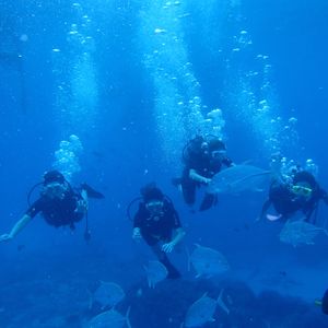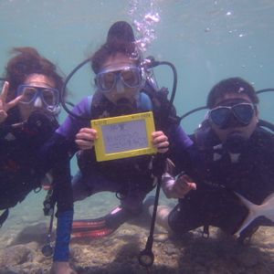 高校の友だちと3人で行きました!その日のこのツアーのグループは自分たちだけでした。ダイビング自体は、そんなに難しくもなく、だれでも簡単にできると思います。