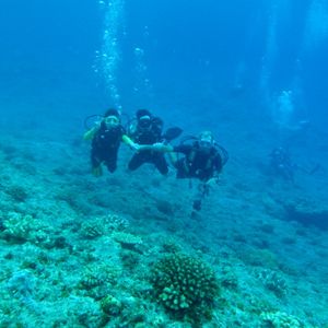 私は体験ダイビング3回目(2本ずつ2回経験済み)の参加で2本潜りました。股関節の動きが悪いので、フィンを付けてくださいと事前にお願いしたところ、当日、フィンを付けてくださるだけでなく、重いタンクも海の中まで運んで頂き、本当に助かりました。ありがとうございました。