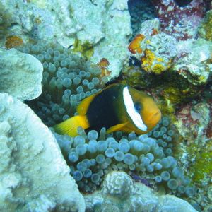 クマノミの城だ。クマノミの城には親も居れば子供もたくさん居ました。インストラクターのダグさんからソーセージを頂き餌付けも楽しめました。