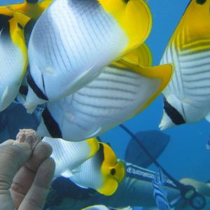 たくさん寄ってくる色とりどりの魚たちも目を楽しませてくれます。