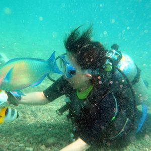 初めてだったので緊張しましたが、何とか潜ることが出来ました。丁寧に指導してもらい助かりました。相方が体調不良だったので一人で午前中だけビーチで体験しましたが、楽しかったです。ボートで昼からも行けたらもっと奇麗なところが見れたのではないかと思います。またチャレンジしたいと思います。最後に記念撮影で撮った写真をCD-Rに焼いてくれて後日もらいました。これも良かったです。