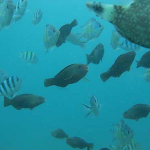 私は小さいときから、水がホントに怖くて全然泳げないですが、浮き輪につかまることも出来たし、ロープもあったから、大丈夫でした!もぐるのに悩んでいた私を デーブさんが手をとって下まで連れていってくれました。初めは緊張しながら息をしていましたが、魚に夢中になっていると、自然とリラックスしてました~!!途中 怖くなったけど、おちついたら 出来たので デーブさんに感謝☆