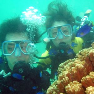 カップルで参加しました。一緒に参加したファミリーと一緒に潜りました♪