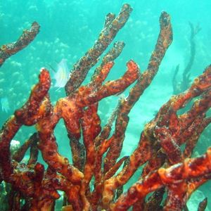 思っていたところ、サンゴのたくさんある岩場の海底を