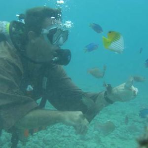 初めてのダイビング参加でした。ビーチダイビングで申し込んだのですが、1人参加だったこともあり、ボートダイビングをご提案頂き、乗船料50ドル追加で参加しました。多少の不安がありましたが、変更してとてもよかったです。スタッフの方に手を取って頂き、潜水中もずっとフォロー頂きました。目の前の色とりどりの魚を見られたり、珍しい魚は、指をさして案内頂きました。機会がありましたら、ぜひライセンス取得に挑戦したいと思いました。ダイビング初めての方でも、ぜひボートダイビングをお勧めしたいです。
