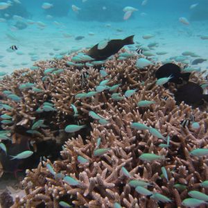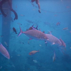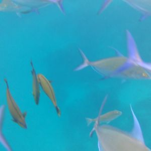 餌付けのためのイカをくれますが、怖いぐらい魚が寄ってくるので餌のイカは一瞬でなくなってしまいます。餌がなくても珊瑚があるところにはたくさんの種類のお魚がいてすごく楽しめました。