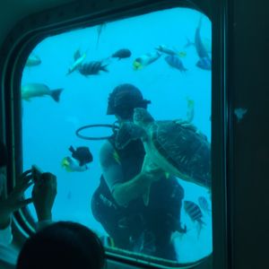 2歳の息子と2人で参加しました。ホテルへの送迎付きなので安心でした。海中展望台へ渡る桟橋からの眺めは、海が澄んでいてブルーで。まさに南の楽園!日本の水族館とは全く違う、リアルな海中が見れるんですよ。自分が海の中にいるような気分に浸れました。2歳の息子も大はしゃぎでした。とにかく桟橋からの眺めも最高で、眼下には肉眼で色とりどりの魚が見れるんです。それだけでも大満足でしたよ。