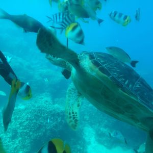 魚もいっぱいいたけど、やはりウミガメとの遭遇は感動!人になれていて、かわいいです。絶滅危惧種?かなんかで、触ってはいけませんでしたが、周りを泳いでくれました!絶対に会えるわけではないようですが、確率は高いそうです。