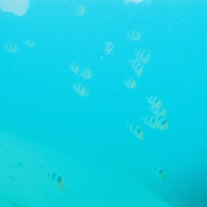 オリエンテーションの時にスタッフの方が、「運がよいことにここ最近、かなりの確率でウミガメが来ています!」とアナウンスがあり、テンションが上がりました。天気は曇っていましたが海の中は思ったより透き通っていて沢山の魚が見られました。