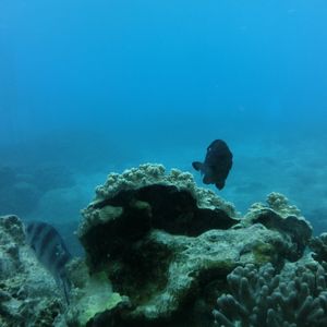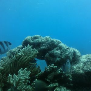 海中展望台のところから、降りて水深8メートル程度の所を泳ぎサンゴ礁のところまで足がつくエリアもありました。透明度がたかく、魚もものすごくたくさんいました!海亀とも泳ぐことができて、最高でした!!有料でしたが、水中での写真もとっていただけ、気に入れば購入することができましたよ。