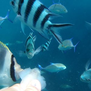 このフィッシュアイマリンパークさんのシュノーケリング体験なら、海中展望塔のまわりを泳ぐわけだし、ガイドのお兄さんがなにかとお世話してくれるので、私のような超初心者でも安心して楽しめましたから、シュノーケリングをしてみたいけど、ちょっと不安って方にも、ぜひお勧めです!!!餌づけ体験もおもしろかったし^^