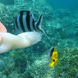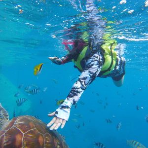 実際にシュノーケルをすると、海中展望台から見ていた魚はもちろん、他にもたくさんの種類の魚が見えたり、海ガメとかなり接近して泳ぐことができて感動でした!!