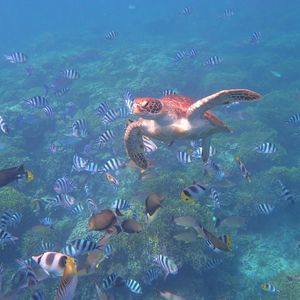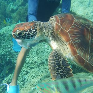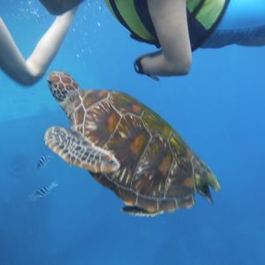 海に入ると海ガメが遊びに着てくれて、触ることもできました!!スタッフがゴープロで綺麗な写真も撮ってくれて最高でした。