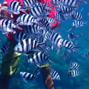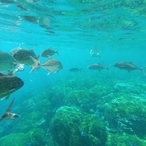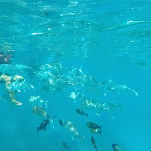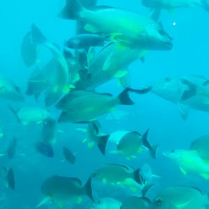 マリンパーク周辺のビーチは透明度も高くおさかな天国で、水面から見ているだけでもワクワクしますが、やはり少しだけ潜って下から魚の群れを見るのも面白いですよ。