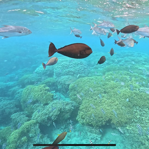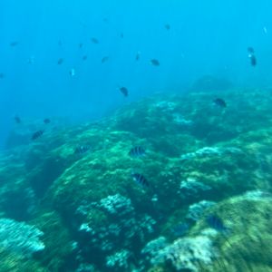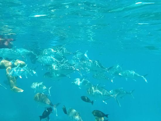 スタッフが潜ってヒトデやナマコを手渡してくれたり(最後に返しました)、最後のポイントでは餌を蒔いてたくさん魚が寄ってきてくれて、魚の中で泳いでいるようで楽しかったです。所要時間は約1時間でした。