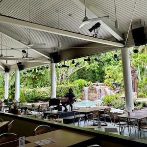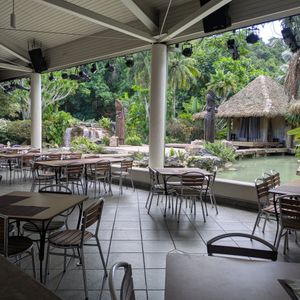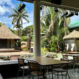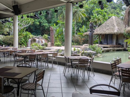 ランチはとても南国らしい環境で、バイキングスタイルでした。味は美味しかったです。