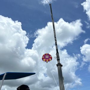 パラシュートは初めてだったのでとても楽しかったです。上からウミガメが2匹ほど見え、飛んでいたのは5分くらいだったかと思います。