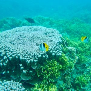 海中展望台の近くの海に行って、透明度の高い海中、サンゴ、多数の熱帯魚などをたっぷり堪能しました。魚に餌やりも体験しましたが、その際指をかじられました。1mくらいのサメにも出会いました。
