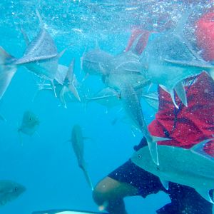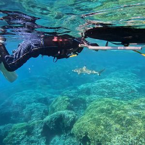 サメが来て焦りましたが、安全だと説明を受けて一緒に泳ぎました。
