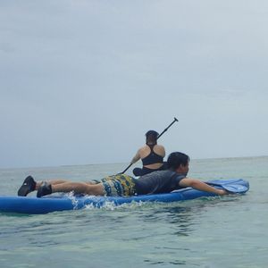 のんびりとしながら、SUPをしてみたくツアーに参加しました。スタッフの方は、皆さんとても気さくで、カタコトの日本語で楽しませてくれますよ。SUPのレッスンは、やりたい時間に声をかけると用意してくれます。ボードに乗って立てるまで時間がかかるのかな?と思っていましたが、私も娘も最初から立つことができました。カヤックは2人乗り用と底が透明な1人乗り用があり、スタッフの方のSUPと競争したりと、普段運動不足の私には、なかなかハードでした。今回はランチ付きにしたのですが、美味しかったしボリュームもありました。私の英語力がないせいで、途中勘違いがあったのですが、その後スタッフさんがフォローしてくださり、最後まで楽しく過ごすことができました。大人でも子供でも、1日たっぷり楽しめると思うのでオススメですよ。