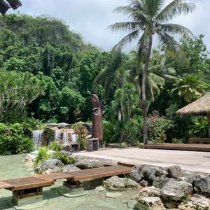 午後はヒルトンのプールに移動。入場証明のリストバンドを頂いておらず、ヒルトンの監視員に不審者扱いで追い出されるというハプニングがあり気分悪かったです。不満な点はそこだけです。その後お店の方が掛け合ってくれたら、態度がコロッと変わりその後は楽しく遊べました。また雨が降って寒かったので温かいプールは助かりました。スライダーもあり、水深1.8mのプールもあり子供達も楽しめたようです。着替えもヒルトンを利用できるため楽です。