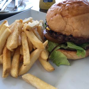 プールサイドでいただくハンバーガーは、これぞ本物のハンバーガー!という美味しさでした。食べきれない大きさです。コーラが付いてきました。