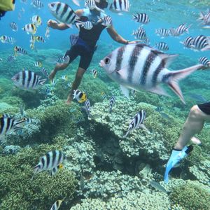 久しぶりのシュノーケリングだったので初めは怖かったけど慣れたら時間があっという間に過ぎてしまいました。魚の大群に感激でした。