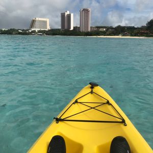 カヤックでサンゴのポイントまで行ったのですが、波もあまりないうえにそれほど深くなくて、ギリギリ足も着くくらいなので泳げない私でも集中して魚と戯れることができました笑