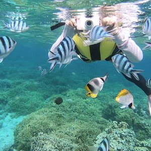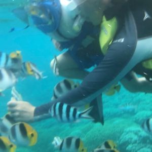 シュノーケリングのノウハウをいろいろ教えてもらえるのかなぁと思っていたのですが、餌を上げる時の注意点や、トラブル時のサインの出し方くらいでした。こちらの勝手な期待値なので特に不満はありません。