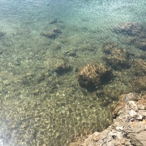 北側の海と比べると波が全く無く驚きました。大小沢山の魚が居ました。