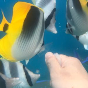 みんみん様 この度は、ご家族でのご参加ありがとうございました(^-^) 餌付けタイムは、もし怖い場合はチョット遠くへ餌をポーン!と投げて頂くと魚達はそちらへ猛ダッシュしていきます。海の透明度が高いので、すごーく遠くまで魚たちの姿が見えてそれだけでも十分お楽しみ頂けると思います☆ スタッフのご説明が行き届いておりませんでしたら失礼いたしました。