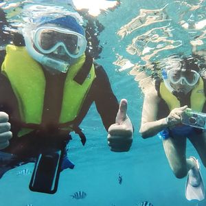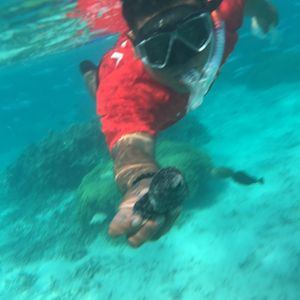 生まれて初めてシュノーケルを装着しました。亀はいなかったのですが、魚たちがとても綺麗で、感動しました。案内役人たちもとても親切で、海の中でいろいろ披露してくれました(*´∀`)♪