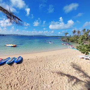 8/13は雨季でかなりの雨が。ツアーは中止かと思いきや決行でした。現地に到着する頃には雨もあがりパラセーリングをすることに。家族3人でしたが、最初に私と高一の娘で楽しみ、他の御家族が飛ばれた後に、主人とまた娘が2回目飛びました。風が強かったので、体重が軽いと振り回されるそうで2人での飛行という事だったので、娘は2回も飛べてラッキーでした。船が止まった時は揺れるので酔い止め必須です。その後場所を移してジェットスキーとバナナボート楽しみました。ジェットスキーは前が見えなくなる程顔に海水が掛かります。後は好きな遊びが器具を無料で借りれて遊べます。supも体験しました。日本語通じますので大丈夫です。楽しい一時をありがとうございました。