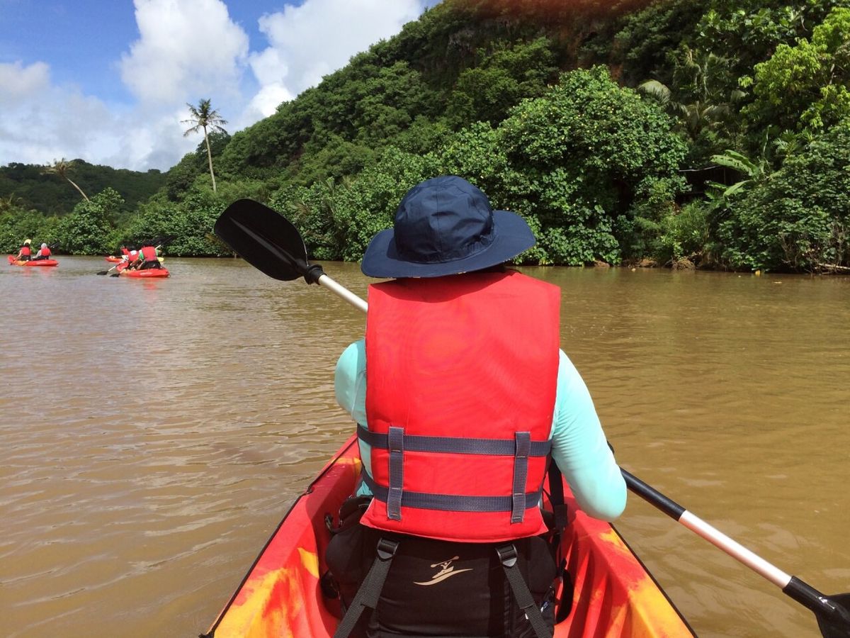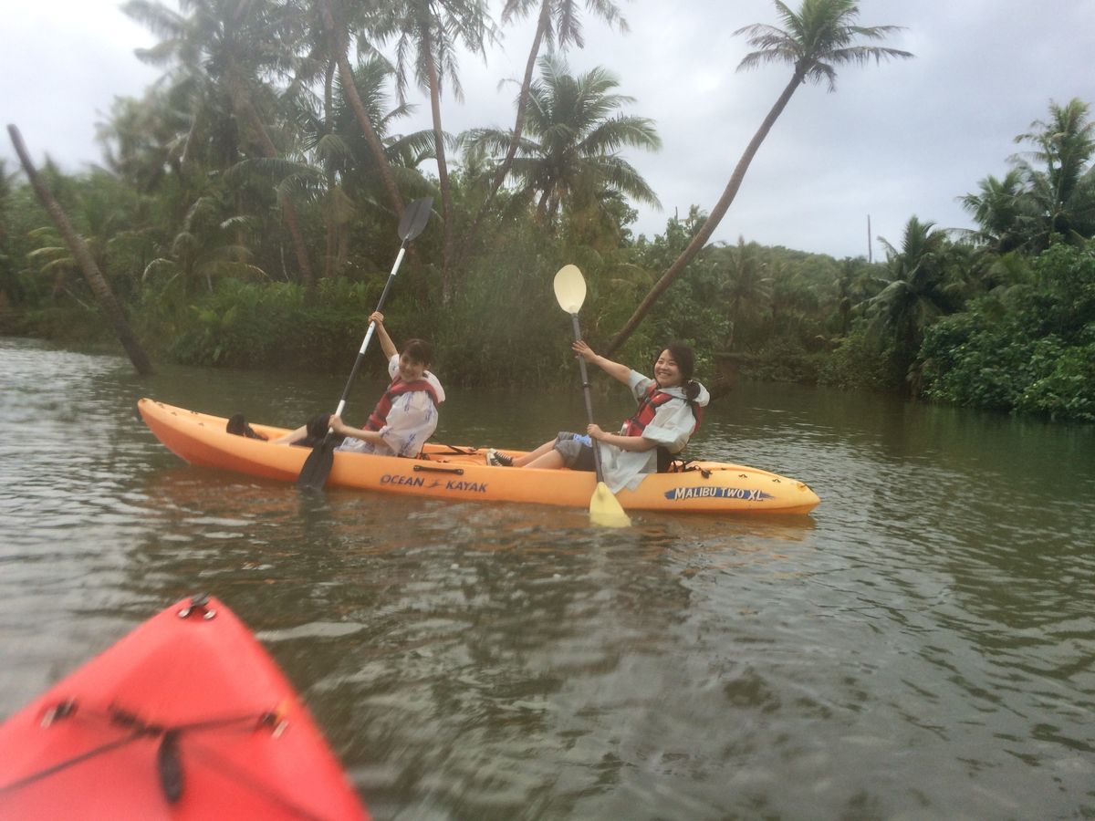 初めてカヤックにのりましたが最初はおっかなびっくりでしたがなれてくるとグアムの自然を感じる事が出来とても楽しかったです。ガイドさんも親切でお昼ご飯も美味しく頂きました。ヤシの実を薄くスライスしたのにお醤油をかけ生まれて初めて食べましたがマグロの大トロの様な味が忘れられません。また、参加したいアクティビティです。