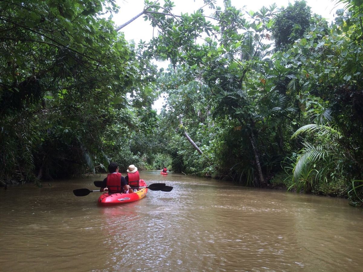 ホテルへのピックアップはリバークルーズの人たちと一緒でした。5人で乗り合わせでしたが、カヤックをしたのは私たちだけでした。のんびりカヤックを漕いでジャングルツアー。嫁はカヤック初体験でしたが二人乗りのせいもあって難なく乗りこなせていました。ランチはBBQ弁当!?みたいな感じ。可もなく不可もなくな味でした。ガイドのダーリンBさんもとても楽しい方でした。嫁がサングラスを落としてしまった時には潜って探してくれました。残念ながら見つかりませんでしたが。皆さんもお気お付け下さい。帽子は必需品!繊細な手を持つ人は手袋も必要かもです。カヤックから落ちることはまずありませんが、お尻は濡れる可能性大ですよ。海とは違った楽しさ発見です。