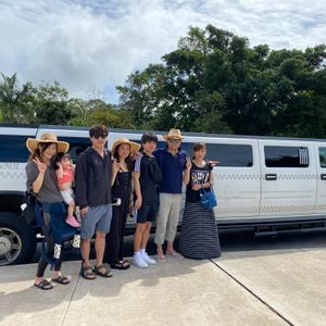 社員旅行中のフリータイムに、11人で2時間利用しました。予約した時間にホテルの正面につけてくれて、凄く目立ちました!会社の団体観光するところ以外を選べるフリープランだったので、効率よく観光することができました。ハマーリムジンは、想像以上にかっこよくて、車内も広かったです。ドライバーさんも気さくな方で、片言ですが、日本語で話してくれました。最後に集合写真を撮ってくれた際は、女性には、ハイビスカスを摘んでくれたり、男性には、運転席に乗せてくれたりと、心温まるサービスをして頂きました。みんな大満足でした!!おすすめです!