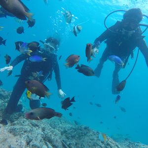 かなり深さがあるところでのシュノーケリングでした。お魚がたくさんいて、また餌も渡してもらえるので、更にたくさんお魚が集まってきて楽しかった。時間もたっぷりあって良かった。