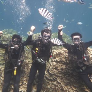 久しぶりのダイビングでした。色とりどりの魚が手にまとわりついてきます。水温も丁度良いし穏やかな海なので初心者には向いてると思います。