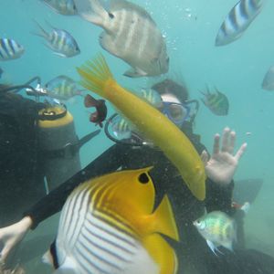 海の中でお魚に餌をあげたりとても貴重な体験でした。